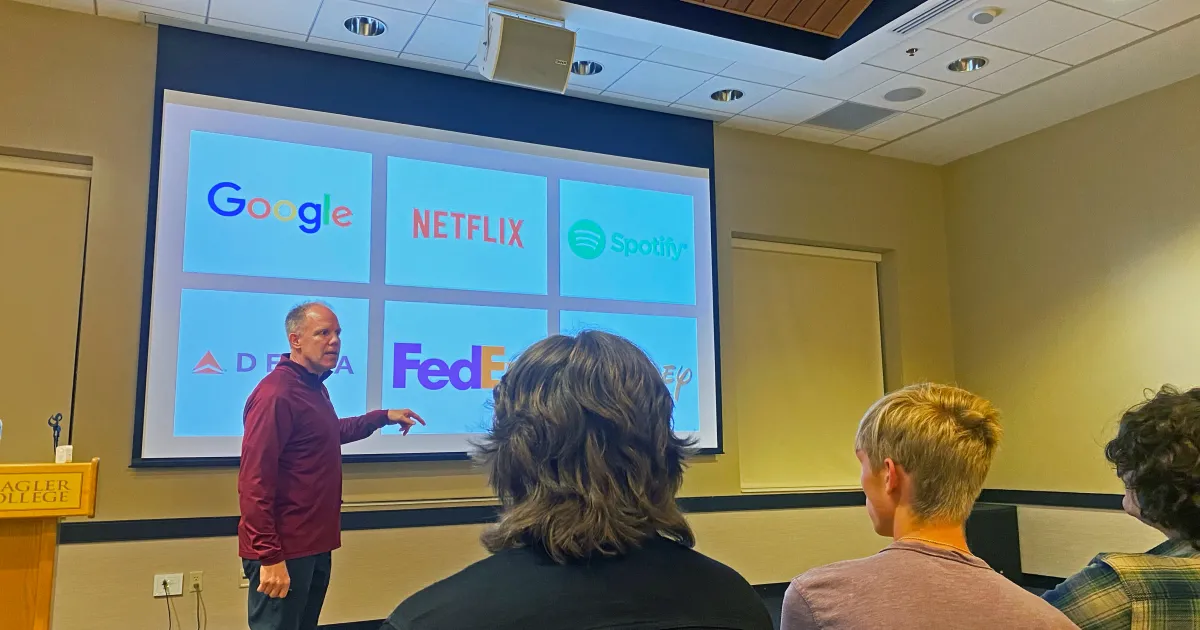 With students from Flagler’s Math & Technology program and other adjacent “quantitative majors” in mind, Daniels focused part of his presentation on where he sees the practical application of math, statistics, economics, and data science in today’s business world.