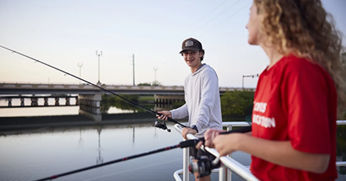 Log in to Saints Connect to book free water activities, fitness classes, and other activities. You can even borrow a fishing pole and some tackle for a peaceful and fun day spent relaxing by the water.
